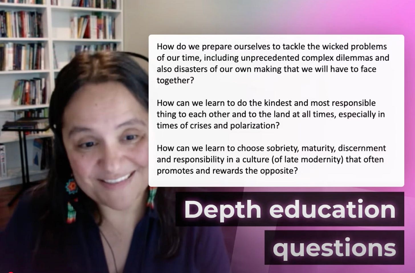This work requires nothing short of acrobatics around the ego—finding ways to bypass the defense mechanisms modernity has instilled in us while opening space for relational possibilities that it has exiled. We call this approach depth inquiry or depth education. It’s probiotic education, designed to address modernity’s cognitive and emotional constipation and get the relational systems flowing again (yes, you read that right).